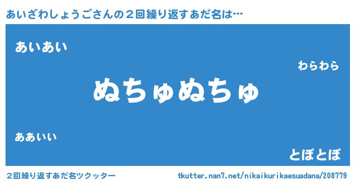 | 欧米人風あだ名 | 『ウサインあいざわしょうご』 |