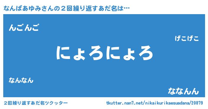 | 男性向けラノベタイトル風あだ名 | 『なんばあゆみの嫁は女の子じゃないと思った?』 |