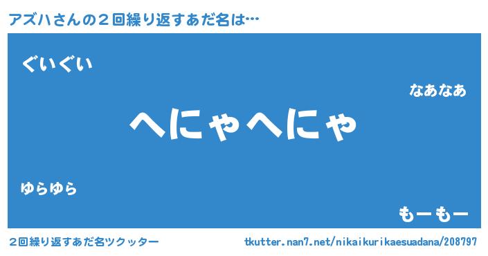 | 女子向けラノベタイトル風あだ名 | 『アズハ恋絵巻』『アズハの契約王妃』 |