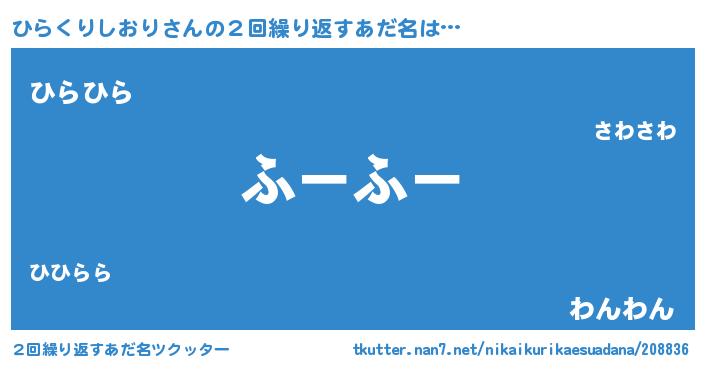 | 料理風あだ名 | 『ひらくりしおりのトマト煮』 |
