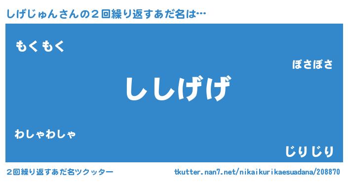| ヘコむあだ名 | 『酢こんぶ』『しげじゅん(遠い目)』 |