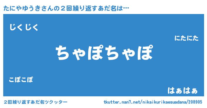 | 意味不明あだ名 | 『住所不定無職たにやゆうき(56歳)』 |