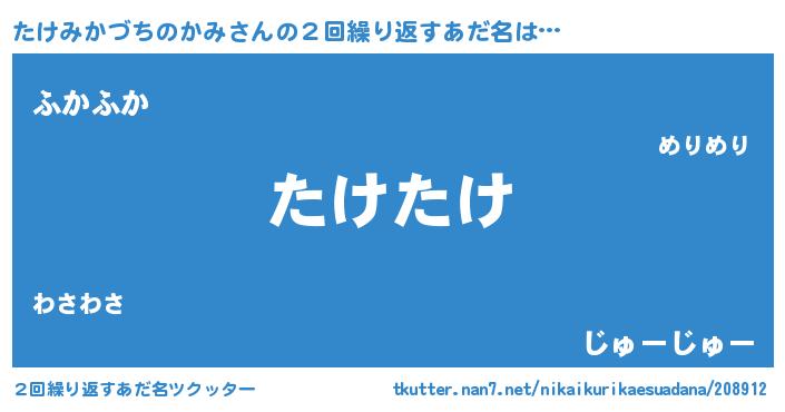 | 男性向けラノベタイトル風あだ名 | 『はたらくたけみかづちのかみさま!』 |