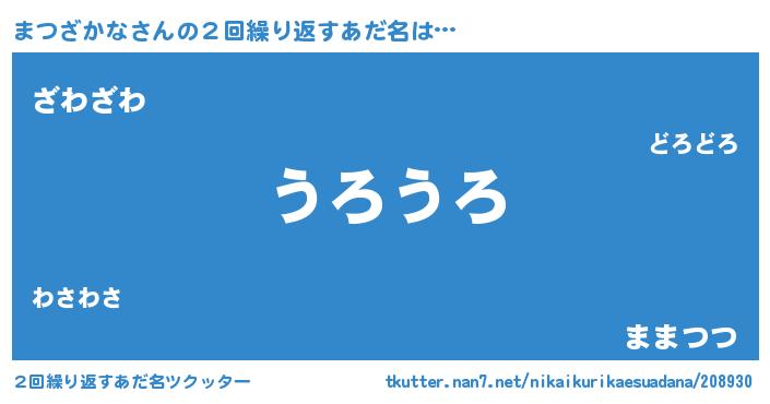 | 欧米人風あだ名 | 『ウサインまつざかな』 |