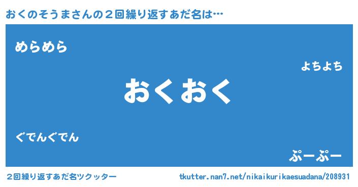 | ヘコむあだ名 | 『おくふぇ~』『おくのそうま(小並感)』 |