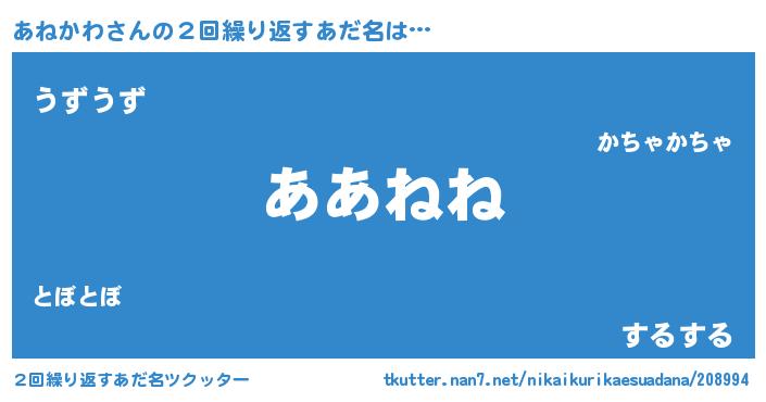 | ポケモン風あだ名 | 『アネカダネ』『ヒアネカワ』 |