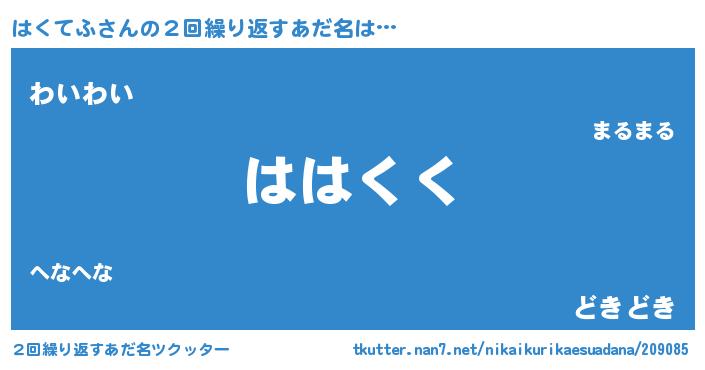 | 意味不明あだ名 | 『はくてふフォーエバー』『自称はくてふ』 |