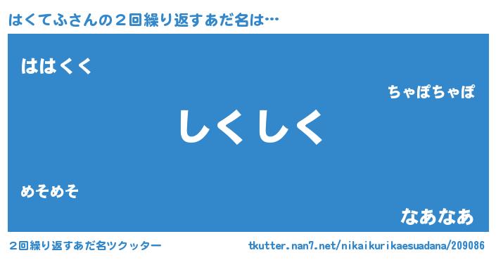 | 意味不明あだ名 | 『住所不定無職はくてふ(85歳)』 |