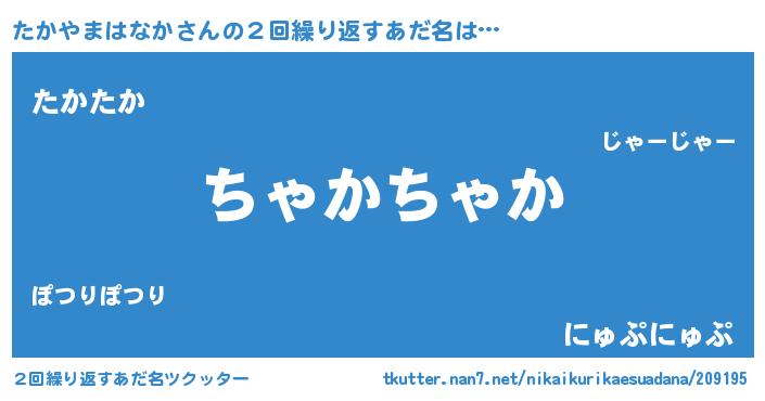 | 欧米人風あだ名 | 『たかやまはなか・ステッグマイヤー』 |