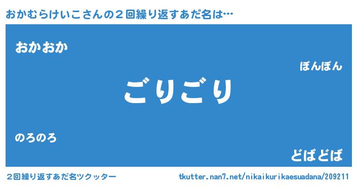 | ヘコむあだ名 | 『おかむらけいこ(遠い目)』『おかにゅー』 |