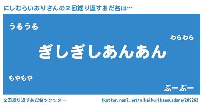 にしむらいおりさんの2回繰り返すあだ名をツクッター!