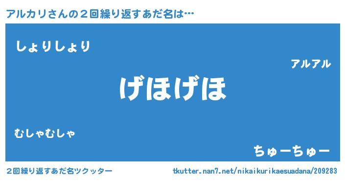 | 意味不明あだ名 | 『永久保存アルカリ』『ペロリンアルカリ』 |