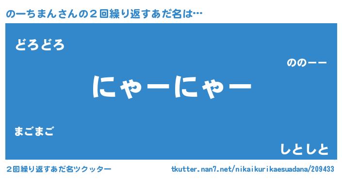 | 男性向けラノベタイトル風あだ名 | 『のーちまんの嫁は女の子じゃないと思った?』 |