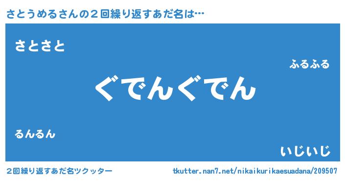 | ヘコむあだ名 | 『さとうめる(笑)』『さとにゅー』 |