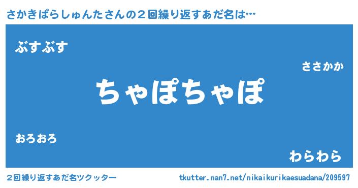 | 意味不明あだ名 | 『眠気覚ましガムさかきばらしゅんた味』 |