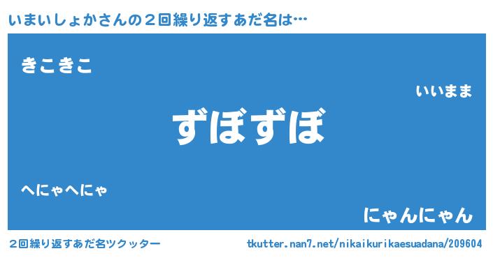| 意味不明あだ名 | 『住所不定無職いまいしょか(12歳)』 |