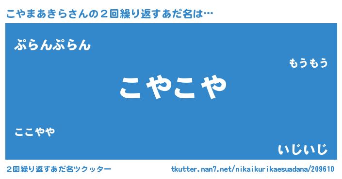 | 恥ずかしいあだ名 | 『プリティーこやまあきら』『こやっちょ』 |