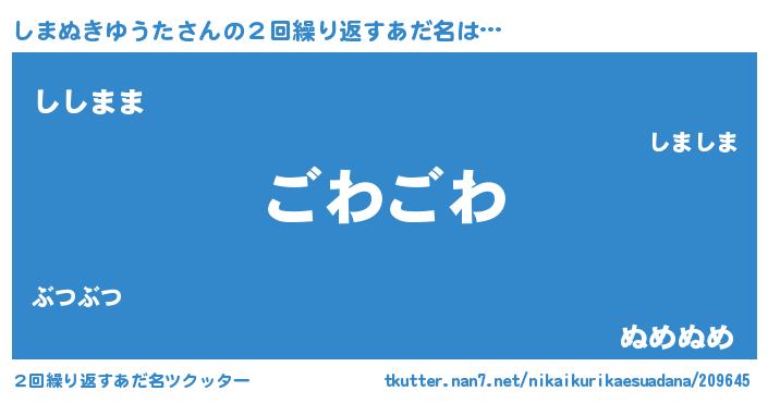 | ヘコむあだ名 | 『しまぬきゆうた(苦笑)』『レバニラ』 |