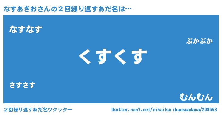 | ヘコむあだ名 | 『なすあきお(笑)』『なすにー』 |