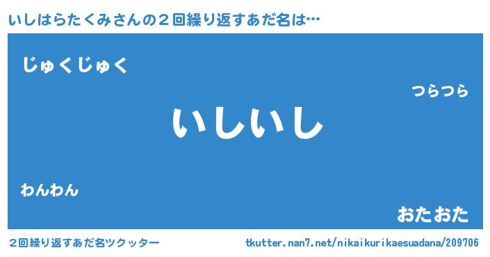 | ポケモン風あだ名 | 『イシチュウ』『イーシイ』 |
