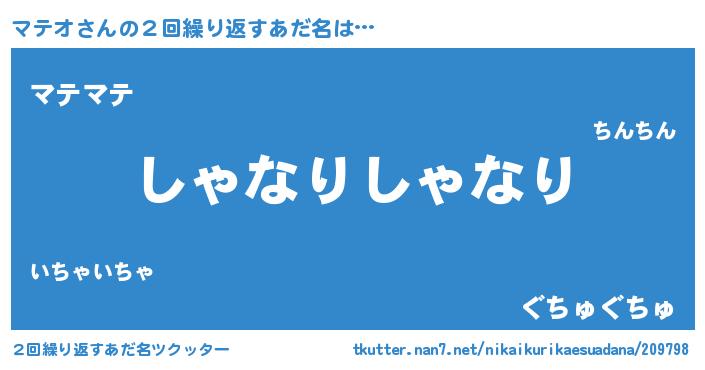 | 意味不明あだ名 | 『住所不定無職マテオ(43歳)』『自称マテオ』 |