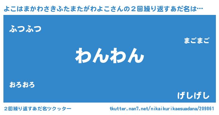 | 意味不明あだ名 | 『ヨモギ科よこはまかわさきふたまたがわよこ属』 |