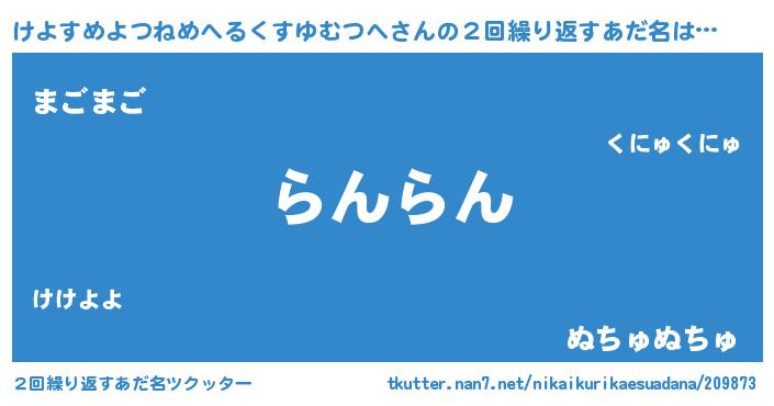 | 料理風あだ名 | 『けよすめよつねめへるくすゆむつへごはん』 |