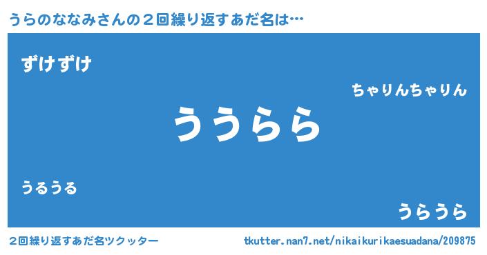 | 恥ずかしいあだ名 | 『うらっちょ』『プリティーうらのななみ』 |