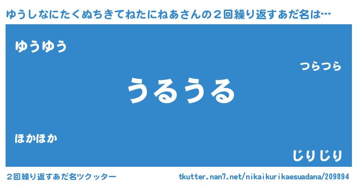 | 料理風あだ名 | 『ゆうしなにたくぬちきてねたにねあの豆乳スープ』 |