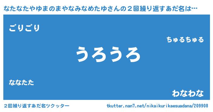 | 欧米人風あだ名 | 『ウサインなたなたやゆまのまやなみなめたゆ』 |