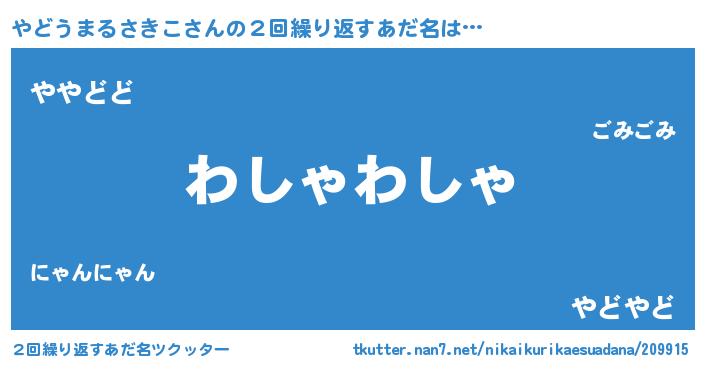 | 欧米人風あだ名 | 『トリンドルやどうまるさきこ』 |