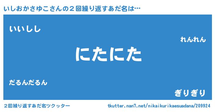 | 欧米人風あだ名 | 『ウサインいしおかさゆこ』 |