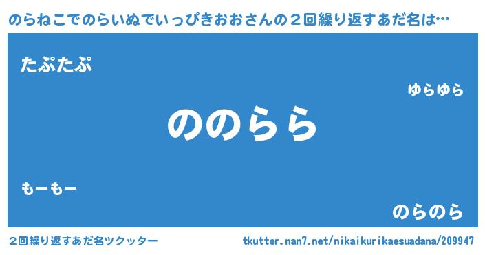| 欧米人風あだ名 | 『のらねこでのらいぬでいっぴきおおクリステル』 |