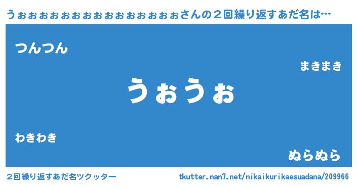 | 男性向けラノベタイトル風あだ名 | 『うぉぉぉぉぉぉぉぉぉぉぉぉぉぉぉの憂鬱』 |