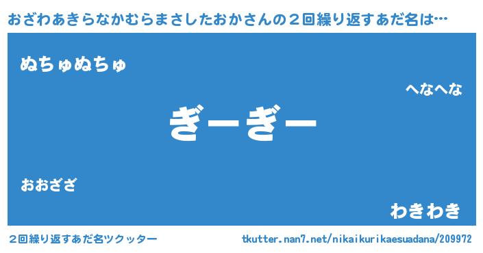 | 意味不明あだ名 | 『永久保存おざわあきらなかむらまさしたおか』 |