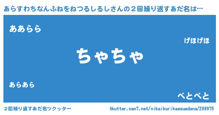 | 意味不明あだ名 | 『あらすわちなんふねをねつるしるしフォーエバー』 |