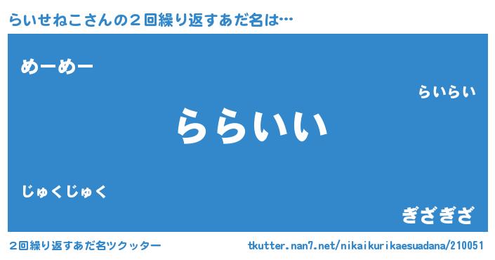 | 意味不明あだ名 | 『らいせねこフォーエバー』 |