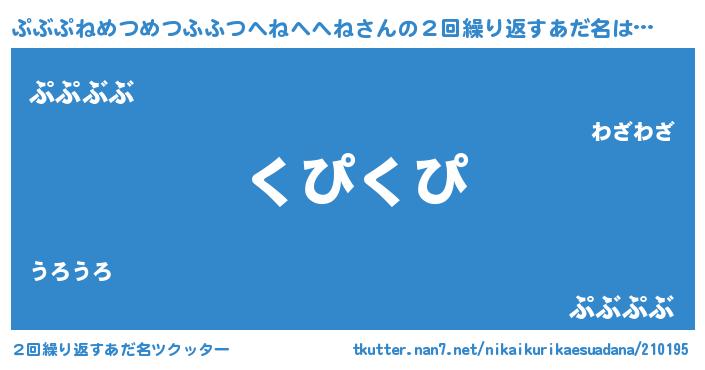 | ヘコむあだ名 | 『ぷぶぷねめつめつふふつへねへへね(遠い目)』 |