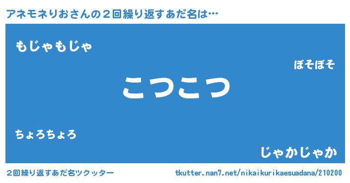 | ヘコむあだ名 | 『アネモネりお(遠い目)』『酢こんぶ』 |