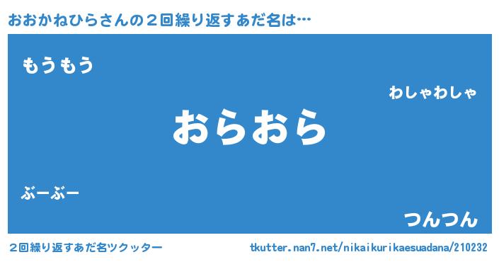 | 意味不明あだ名 | 『とにかく怪しいおおかねひら』 |