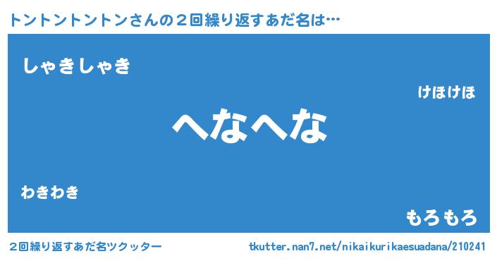 | ヘコむあだ名 | 『トントントントン(遠い目)』『トンぷりん』 |