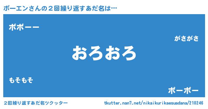 | 女子向けラノベタイトル風あだ名 | 『ボーエンの卵を拾いまして』 |