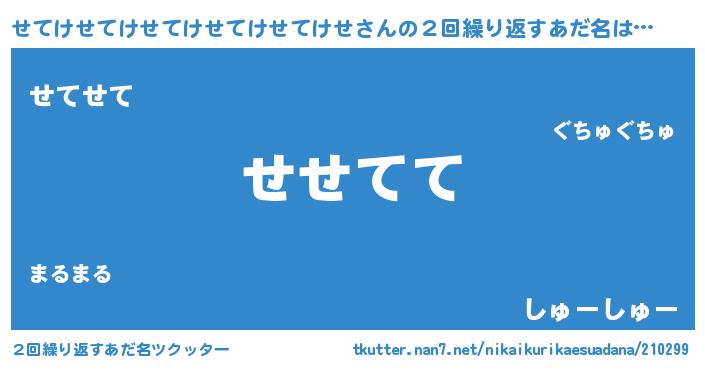 | 男性向けラノベタイトル風あだ名 | 『やはりせてけせてけせてけせてけせてけせの青春ラブコメはまちがっている 』 |