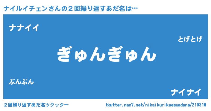 | 意味不明あだ名 | 『永久保存ナイルイチェン』 |