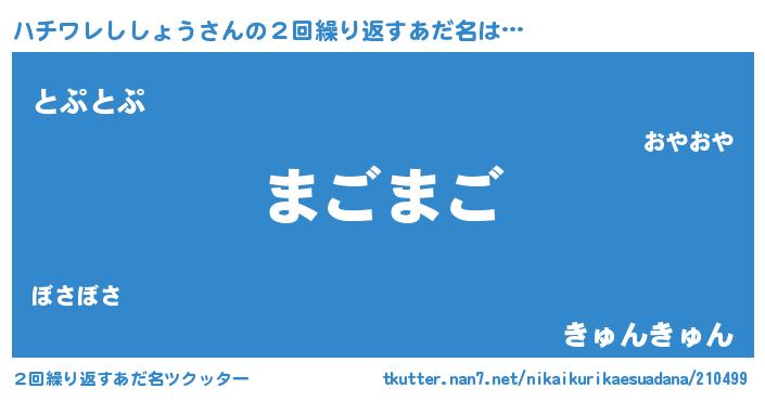 | 意味不明あだ名 | 『自称ハチワレししょう』 |