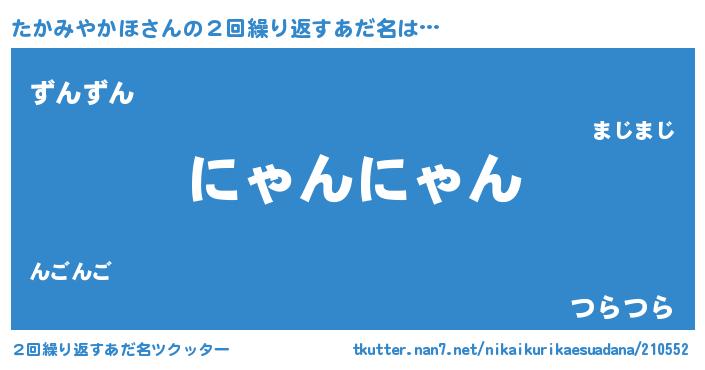 | 男性向けラノベタイトル風あだ名 | 『たかみやかほの嫁は女の子じゃないと思った?』 |