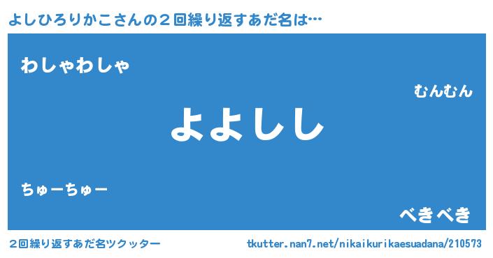 | 女子向けラノベタイトル風あだ名 | 『よしひろりかこの雑貨屋さん』 |
