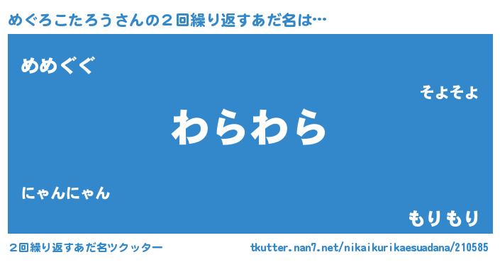 | 意味不明あだ名 | 『ニラ科めぐろこたろう属』 |