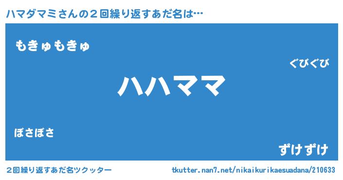 | 男性向けラノベタイトル風あだ名 | 『やはりハマダマミの青春ラブコメはまちがっている 』 |
