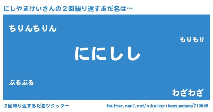 | 意味不明あだ名 | 『にしやまけいフォーエバー』 |